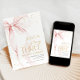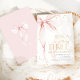Pink bow girl's 3rd birthday invitation. Modern feminine design in blush pink and gold. Features trendy watercolor coquette bow, calligraphy heart script font and modern typography THREE. Perfect for an elegant style girl's third bday celebration. Personalize with your own details. Printed Zazzle invitations or instant download digital printable template.