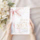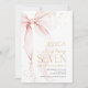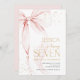 Pink bow girl's 7th birthday invitation. Modern feminine design in blush pink and gold. Features trendy watercolor coquette bow, calligraphy heart script font and modern typography SEVEN. Perfect for an elegant style girl's seventh bday celebration. Personalize with your own details. Printed Zazzle invitations or instant download digital printable template.