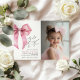 Pink Bow Girls just wanna be One Photo birthday Invitation