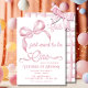 Charming Pink Bow "Girls just want to be ONE" first birthday party. Features watercolor pink bow and a pink and white ribbon back.