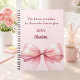 A soft blush pink background, decorated with a large bow. Inspiratiional, motivational Quote: The future is written by those who dare to plan.