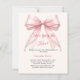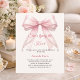 An elegant soft ivory colored background, decorated with a pink colored bow with pearls. Personalize and add a name and party details.
