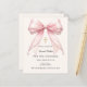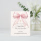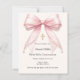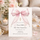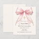 A soft ivory colored background, decorated with a pink large bow with pearls and a golden cross. Personalize and add a name and details details.