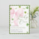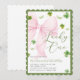 Pink Bow Lucky One Shamrock Clover 1st Birthday Invitation