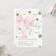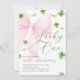 Pink Bow Lucky One Shamrock Clover 1st Birthday Invitation
