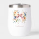 Personalise this pretty pink bow with watercolor florals thermal wine tumbler with your name or text. The design is on the front of the tumbler. Trendy coquette aesthetic with watercolor pastel flowers added. Great gifts for bridesmaids or any woman.