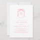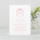 Cute pink minimalist, vintage inspired baby shower invite with a whimsical hand drawn watercolor monogram crest.