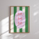 Pink Bow on Green Stripe Pattern Wall Art Print