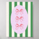 Charming wall art featuring three pink bows on a green striped background with a soft pastel oval centre. A sweet design perfect for nurseries, girly décor, or preppy and grandmillennial style interiors.