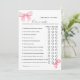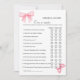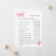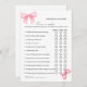 Calligraphy in watercolor blush pink bow Bridal shower or bachelorette party question game with valentine theme.