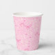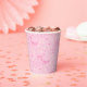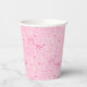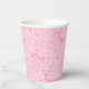 Cute bow theme baby shower or birthday party paper cup featuring illustration of pink ribbons and hearts.