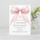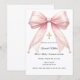 Pink bow pearls girl elegant First Communion Invitation