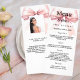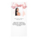 Birthday party menu card. Personalise and add a name, age, date and the menu. A white background and a large pink bow.