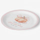 This elegant and charming first birthday paper plate features a beautiful watercolor illustration of a pumpkin with a delicate pink ribbon, perfect for celebrating the 1st milestone of your little one.