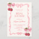 Pink bow ribbon cherry bridal shower invitation