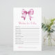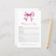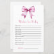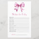 Watercolor Pink Bow Ribbon Baby Shower Wishes for baby game.