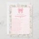 Printed with elegant, easy-to-read fonts and adorned with whimsical ribbon accents, this game not only entertains but also doubles as a beautiful decorative element for your tablescape. Guests will love participating in this engaging activity, creating laughter and special moments that make your baby shower even more memorable. The combination of the trendy pink bow motif and sage green hues makes this a stylish choice for any mum-to-be who adores classic yet modern designs.