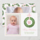 Pink Bow Sash Christmas Monogram Wreath Holiday Card