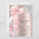 Pink Bow Silver Glitter Drips Rose GoldQuinceañera Invitation