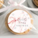 Pink Bow Snowflakes Baby Shower Classic Round Sticker