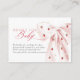 Pink Bow Strawberries Baby Shower Books for Baby Enclosure Card