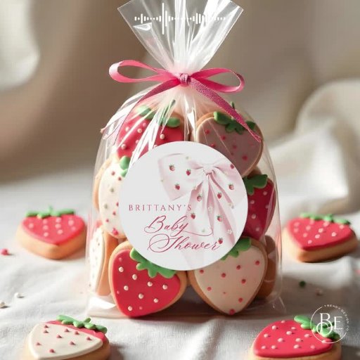 Pink Bow Strawberries Baby Shower Classic Round Sticker