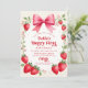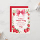 Pink Bow Strawberry Birthday Berry First Birthday Invitation