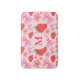 Pink Bow and Strawberry Girly Pattern Monogram Bath Mat. Trendy coquette design for kids bathrooms, teen bathrooms, or dorm rooms.