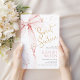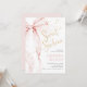 Pink Bow Sweet Sixteen birthday invitation. Modern feminine sweet 16th bday design in blush pink and gold. Features trendy watercolor coquette bow, and heart script font. Perfect for an elegant style 16th birthday celebration. Personalize with your own details. Printed Zazzle invitations or instant download digital printable template.