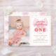 Pink Bow Sweetheart Is One Girl 1st Birthday Photo Invitation