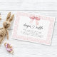 Celebrate the upcoming arrival of a sweet baby girl with this charming baby shower diaper raffle enclosure card. Featuring a delicate pink and white floral toile background and elegant white edges, this invite is as lovely as the occasion itself. A soft watercolor bow crowns the top, while a playful, heart-accented font adds a whimsical touch. Feminine, graceful, and full of joy—this invitation sets the perfect tone for a shower filled with love and celebration. Created by Simply Farmhouse Press.