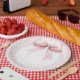 Celebrate the upcoming arrival of a sweet baby girl with this charming baby shower paper plate. Featuring a delicate pink and white floral toile background this design is as lovely as the occasion itself. A soft watercolor bow crowns the top and adds a whimsical touch. Feminine, graceful, and full of joy—this design sets the perfect tone for a shower filled with love and celebration. Created by Simply Farmhouse Press.