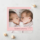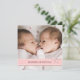 Trendy pink design is just perfect for announcing the arrival of your little baby girls. Featuring a full size photo on the front, highlighted with a sweet band of pink, patterned with little circles and topped with a bow, your little angels first names are highlighted here as well. On the back, the text boxes are designed with room for both baby's names and details. A lovely first introduction of your little girls to family and friends.