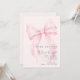 Sweet, soft, and full of charm, this baby shower invitation features a beautiful watercolor pink bow that sets the tone for a joyful celebration. The flowing ribbon design adds a touch of elegance while keeping the overall look light, warm, and welcoming.