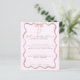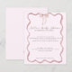 Celebrate your beautiful baby shower in style with these wavy border pink bow baby shower menus for a girl. This girl baby shower menu features a chic pink wave border with a classic pink bow finished with classic calligraphy font text. Perfect for a pink bow baby shower esthetic.