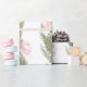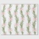 This wrapping paper features a soft, elegant design with light pink bows and green pine branches arranged in a repeating pattern. The delicate watercolor-style illustration gives it a serene and festive feel, ideal for a winter or Christmas theme. The white background enhances the airy and clean aesthetic, making it perfect for subtle and sophisticated gift wrapping.