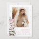 This winter Baby Shower invitation features a hand drawn watercolor tree and a cute pink bow. The modern winter wonderland theme is perfect for a coquette Sprinkle Party. At the backside you can add your own photo of the beautiful mom-to-be.