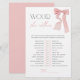 Pink Bow Would She Rather Baby Shower Game