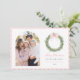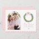 Add a charming touch to your holiday season with these personalised holiday cards featuring a delightful watercolor coquette wreath design and a beautiful arch photo template. The festive green Christmas wreath, adorned with a beautiful pink bow will bring a playful yet elegant feel to your holiday season.