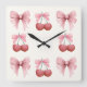 Pink Bows and Cherries Girly Coquette Square Wall Clock