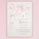 pink bows ivory background baby girl Baptism Invitation