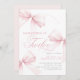 Pink Bows Twelve Birthday Invitation. Showcasing a delicate blush pink watercolor bows and elegant script typography, this design captures a sense of refined beauty and charm. The clean, minimalist layout adds a touch of sophistication, while the fully customisable text lets you tailor every detail to create a unique and memorable birthday invitation.