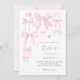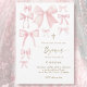 pink bows white background baby girl Baptism Invitation