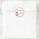 The sticker is made on wonderful paper and had no problem sticking to the bag that I purchased to put it on. I wanted to find a design that would be cute for the bride and groom and this one fit the bill as it has cute "bees" buzzing around and the wedding was taking place in a town called "Bee Cave". The packaging was great and protected the stickers. The website is easy to navigate and there are so many color choices. I had no problem finding a color that the bride was using on everything else selected. The design was adorable and there were many to choose from. You can make the figure as larger or smaller and you can place the photo and writting whereever you want to in the sticker. The printing is fabulous..better than expected.
