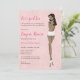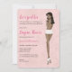 Give the bride-to-be a sexy lingerie shower with these chic invites featuring the bride in nothing but her heels and panties! Pink and gold lingerie material background with bra and panty set with bride’s sizes on back. Multiple options available to customise the brides hair style, hair colour, and skin tone.