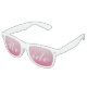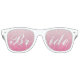 Stylish sunglasses for the bride to be features Bride in a pretty white script font with pink ombre shades background.