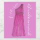 Wine label design features an original marker illustration of a pink bridesmaid dress. Simply personalise with your event information for a unique bachelorette or bridal party gift.