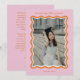 The Bright Squiggles Graduation Announcement Card is a vibrant and stylish way to share your exciting news. The front of this eye-catching card features a photo framed by a playful squiggly line border in retro orange, set against a lively pink background. This fun and modern design highlights your graduate’s personality and joy on this special occasion.