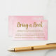 Pink Typography Bring a Book instead of card baby Shower Enclosure Card. This gradient pink background and white typography bring a book invitation insert is perfect for a modern baby shower. Send these enclosure cards out with your baby shower invitations and ask your guests to bring a book for the baby instead of a card. The minimalist and simple design for a baby girl.