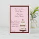 Trendy bridal shower invitation with pink and brown tiered cake on pink striped background and brown border. Invitations come complete with envelopes and your choice of paper finish.